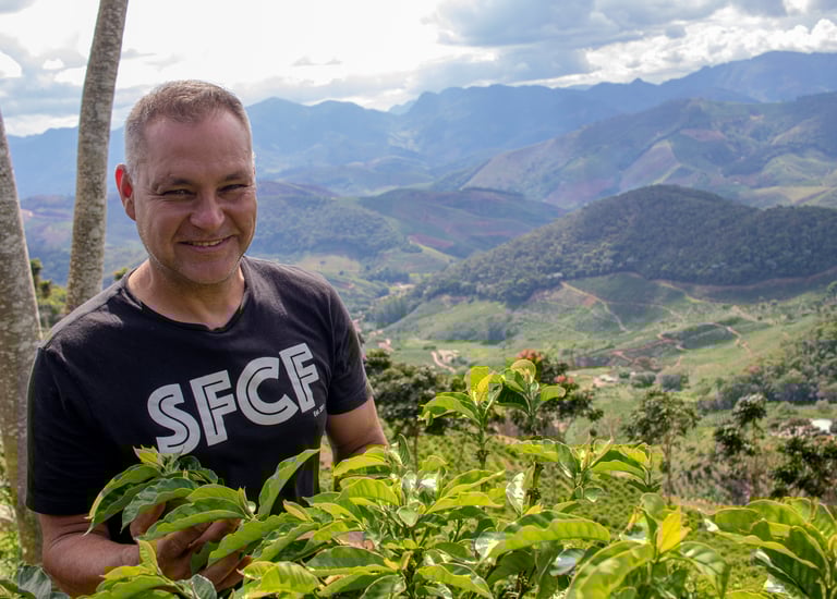 José Alexandre Lacerda represents the third generation of coffee producers in the family. The farm is located in the mountainous region of Pedra Menina, where altitude and slow ripening help build sweetness, clarity, and complexity in the cup.